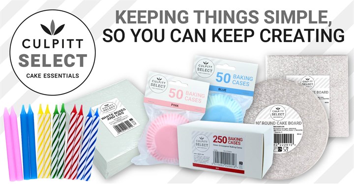 It pays to keep things simple, especially when you're a busy professional cake maker. Culpitt Select is a range of cake essentials for all occasions including sugar paste, boards, boxes, candles, baking cases, piping bags, food colouring and food flavouring.