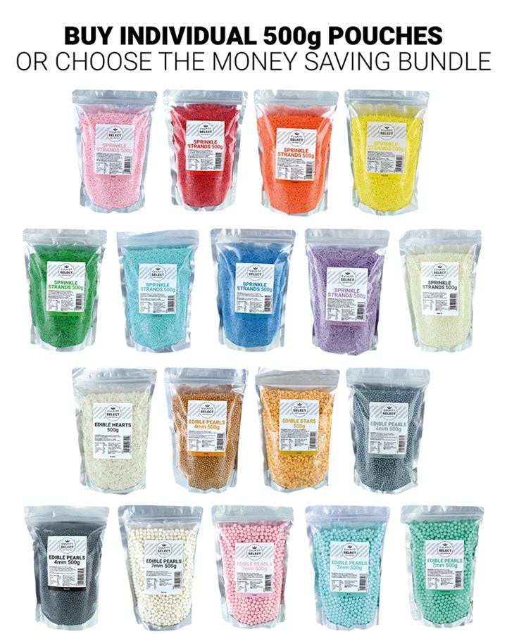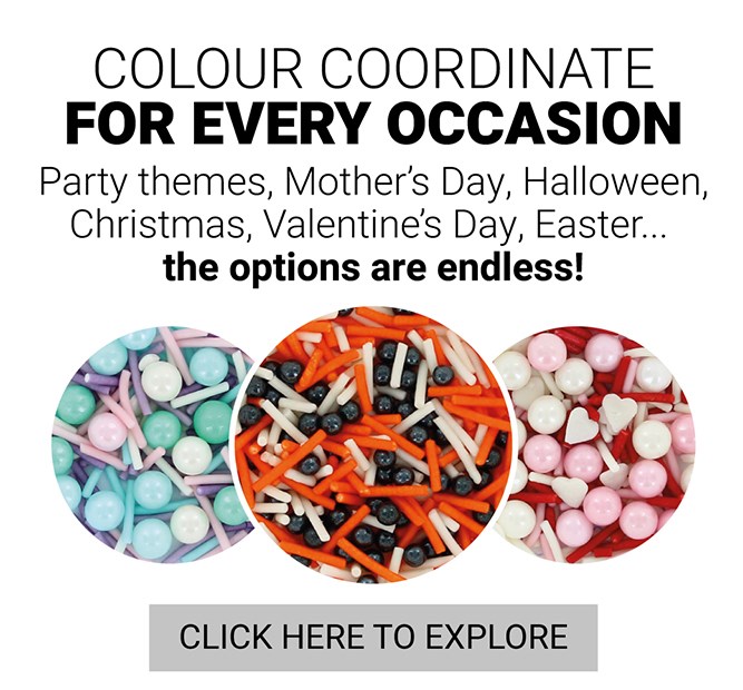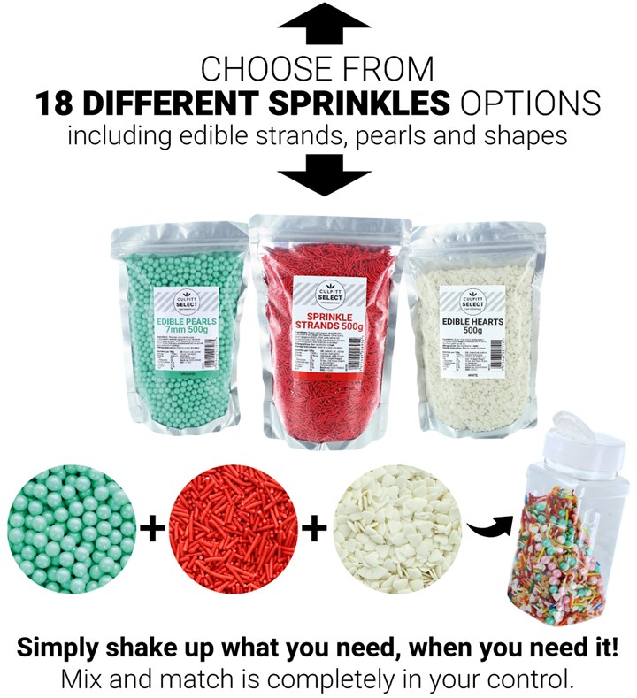 Cheaper per kilo* than equivalent pre-mixed sprinkles, there are simply 100s and 1000s of easy cake decorating options.