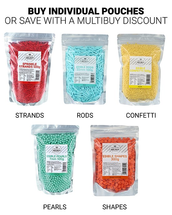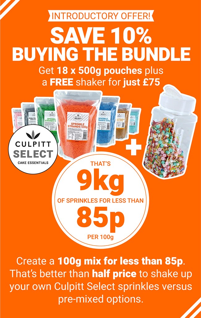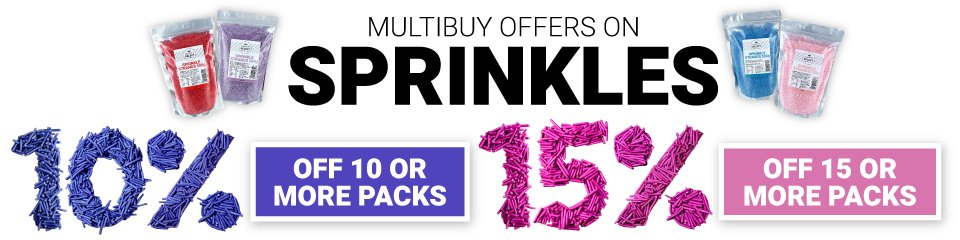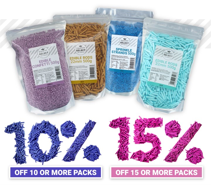 Save even more with our Culpitt Select Sprinkles Multibuy Offer. Applies to full priced items only and discount is applied automatically at checkout. Short shelf life items are not included and do not qualify for further discount.
