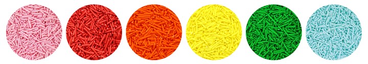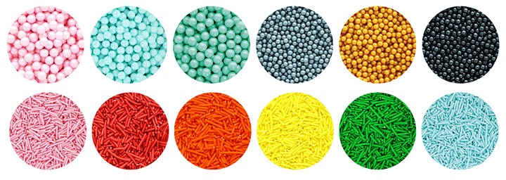 Explore the wide range of strands, jimmies, hundreds & thousands, balls, dragees, pearls, confetti, quins, rods or shapes.