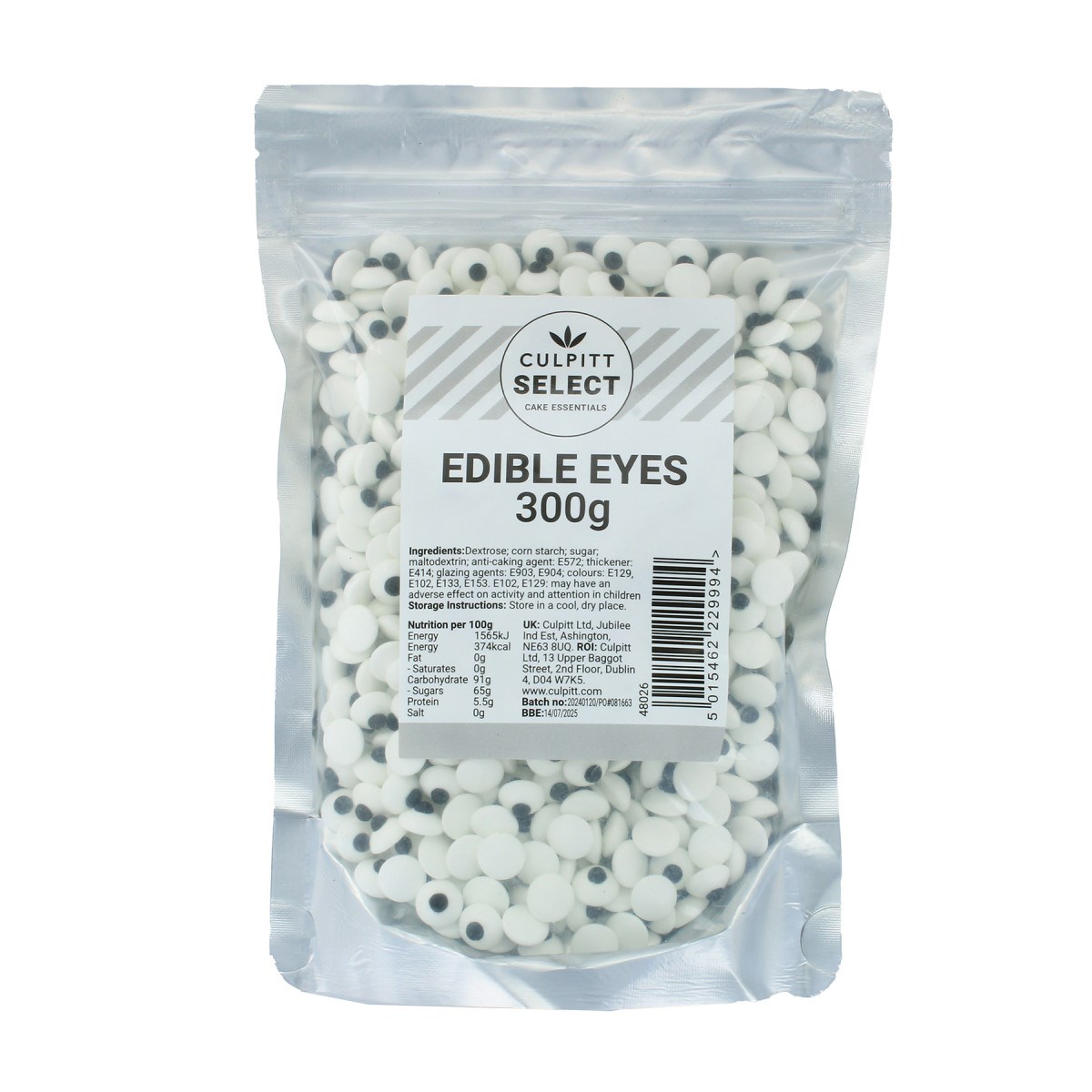 Approx. 10mm round and made from sugar, these top quality edible eye cake decorations can be simply used to create faces on cupcakes and biscuits. For the best fun cake decoration, combine with other colourful sprinkles to create the most eye-catching cake topping mix. Sugar eyes are a popular choice for added wow-factor on all sorts of cakes from birthday cakes to Halloween treats. They are a clever way to add value and make eye contact with customers directly, helping your cakes say 'buy me!'