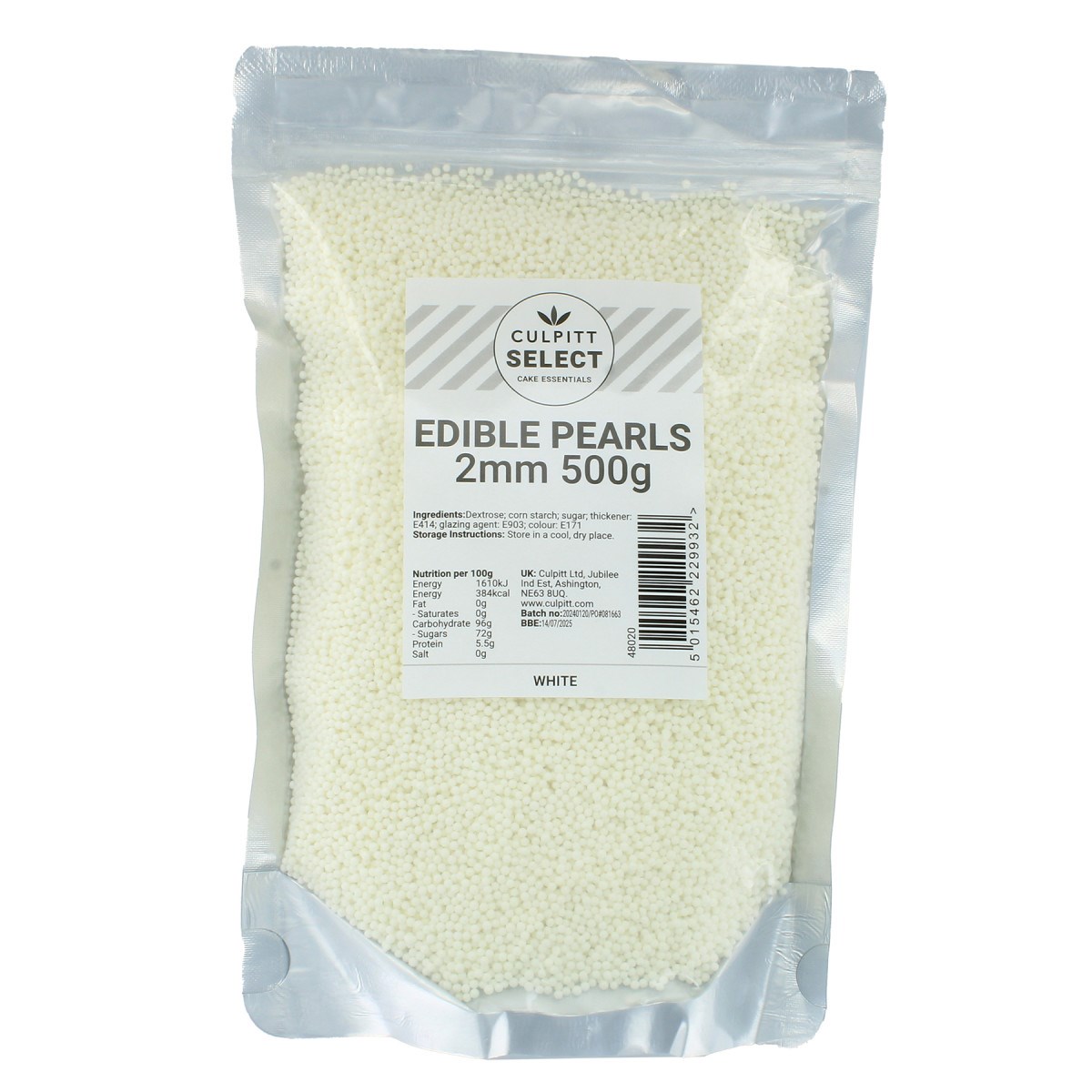 Culpitt Select 2mm white pearl sprinkles, also known as white nonpareils, are a quick, traditional and cost-effective cake topping for professional cake decorating. They are commonly used as the base for the best hundreds and thousands sprinkle mixes.