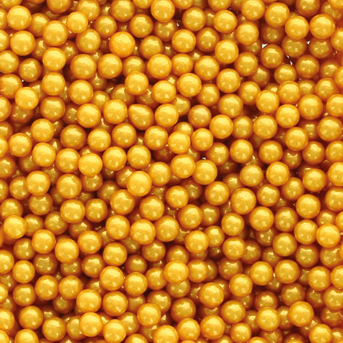 Culpitt Select 4mm gold pearl sprinkles are a quick, cost-effective cake topping for professional cake decorating.