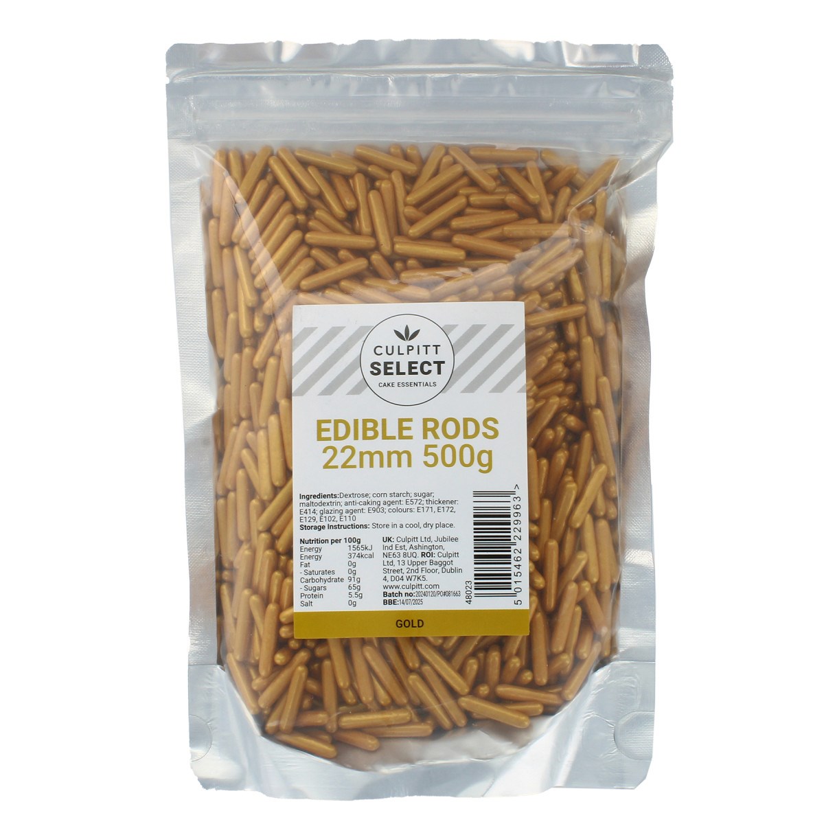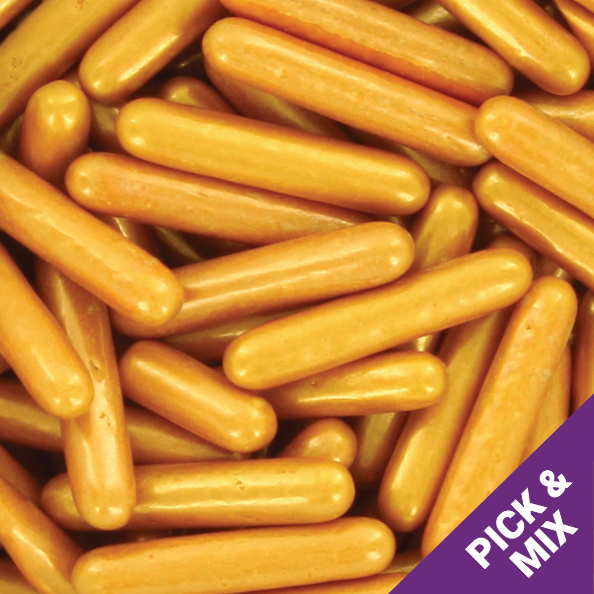 These best quality sprinkle rod shapes can also be easily applied individually as simple gold cake decorations.