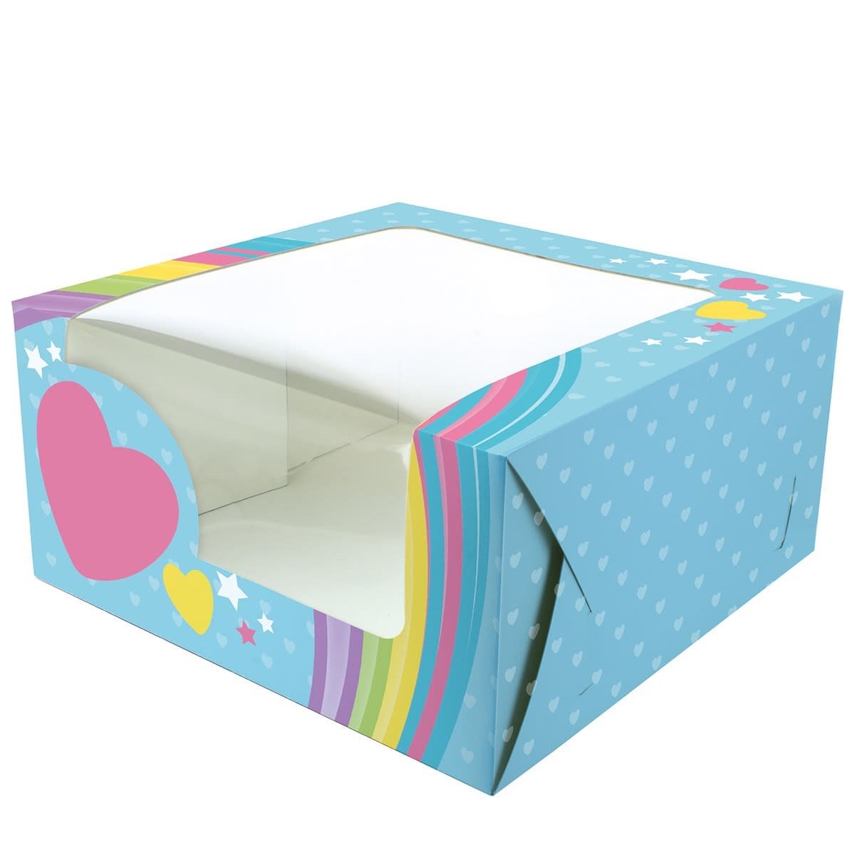 Rainbow 10" Windowed Cake Box - Take your presentation to the next level, these cake boxes are ideal for displaying cakes in stores, bakesales, and coffee mornings. Boxes have a top and front transparent window so you can easily see inside. Sure to enhance the look of your decorative cakes, desserts, puddings, and pies for display or gifts. Boxed 1.