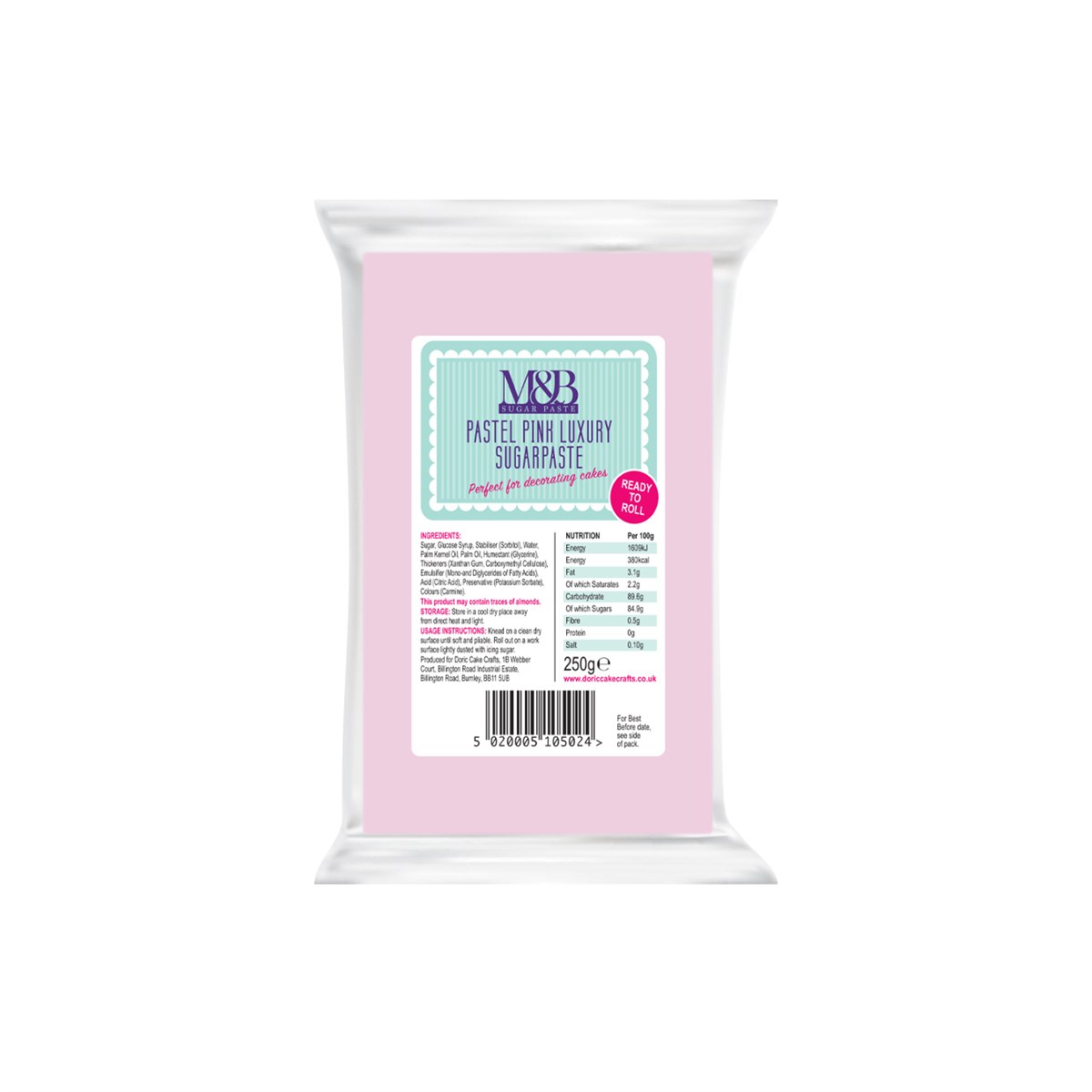 M & B Sugarpaste is a soft, pre-coloured, ready to roll icing. Use to cover birthday and celebration cakes, or make decorations with cutters and moulds. M & B Sugarpaste creates a smooth finish and is easy to use; simply knead and roll out.