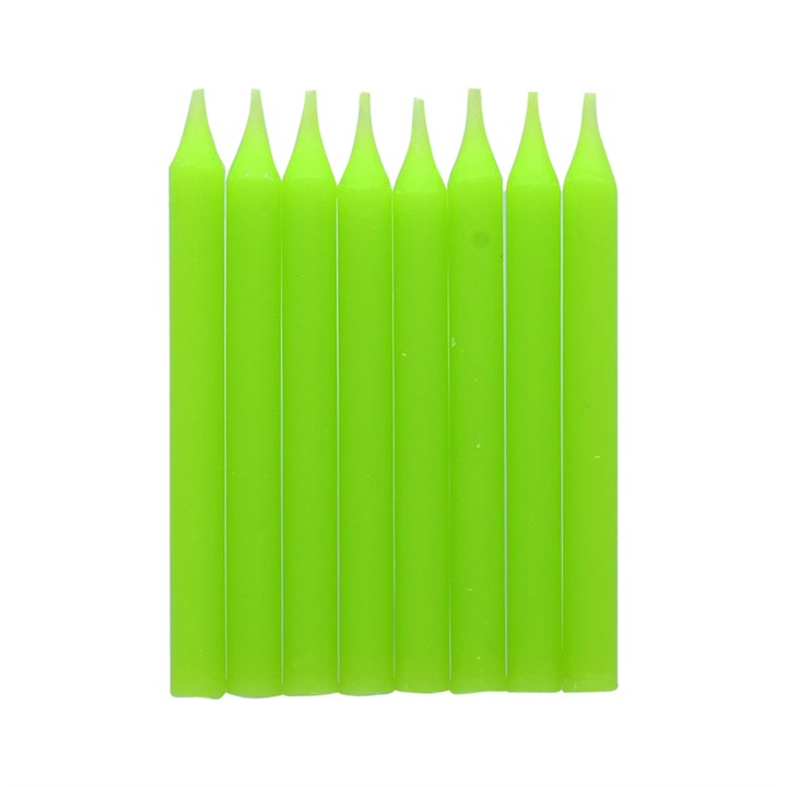 These 51mm straight green candles are packed neatly into small, white boxes for easy storage. There are 100 pieces per box.