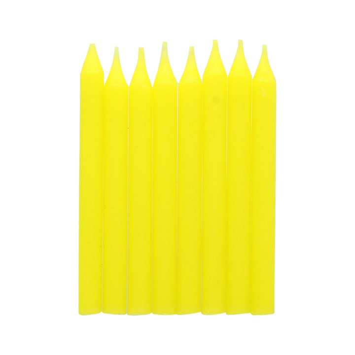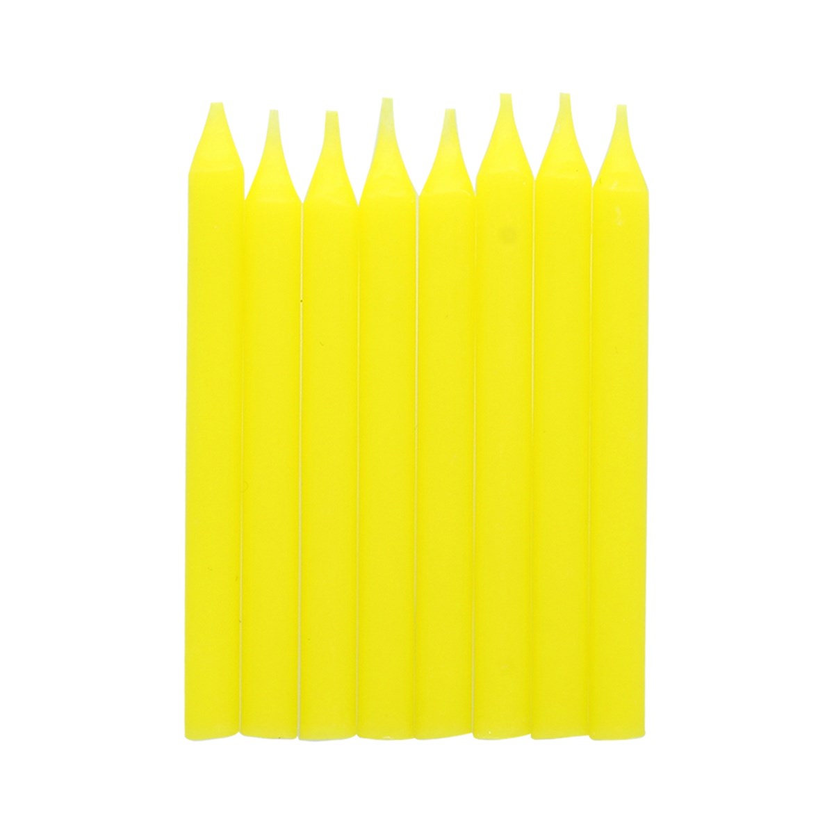 These 51mm straight yellow candles are packed neatly into small, white boxes for easy storage. There are 100 pieces per box.