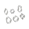 This set contains 6 cutters, including: snowflake, snowman, bauble, Santa's glove, light bulb, and Christmas decoration.