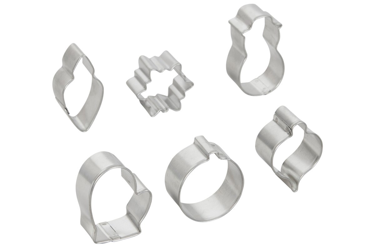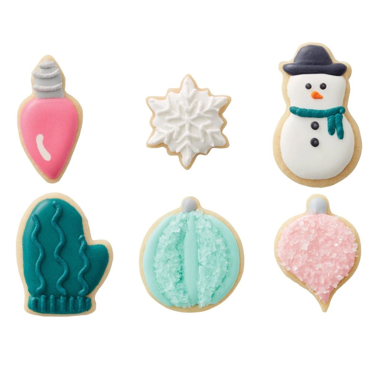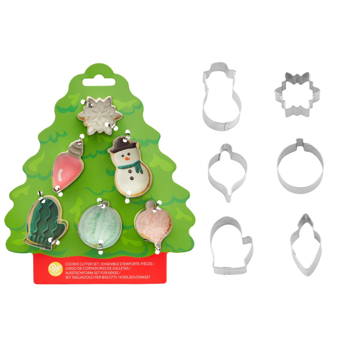From Wilton, this six-piece mini cookie cutter set can be used to create shaped cookies and decorations for Xmas celebration cakes. Use to make treat boxes as gifts.