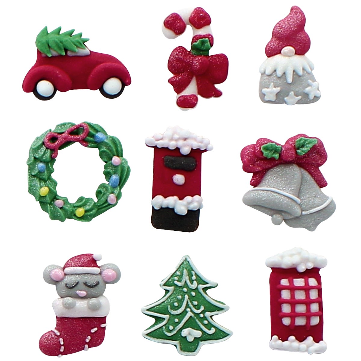 Sugar; cornstarch; EGG albumen; colours: E153, E102, E122, E133, E129, E171