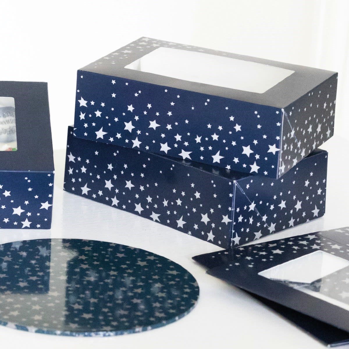 Starry Night Cupcake Boxes are a great way to carry and present your Christmas treats. Boxes come with a dual insert for either 6 standard size cupcakes or 12 mini cupcakes. Single Cupcake Box