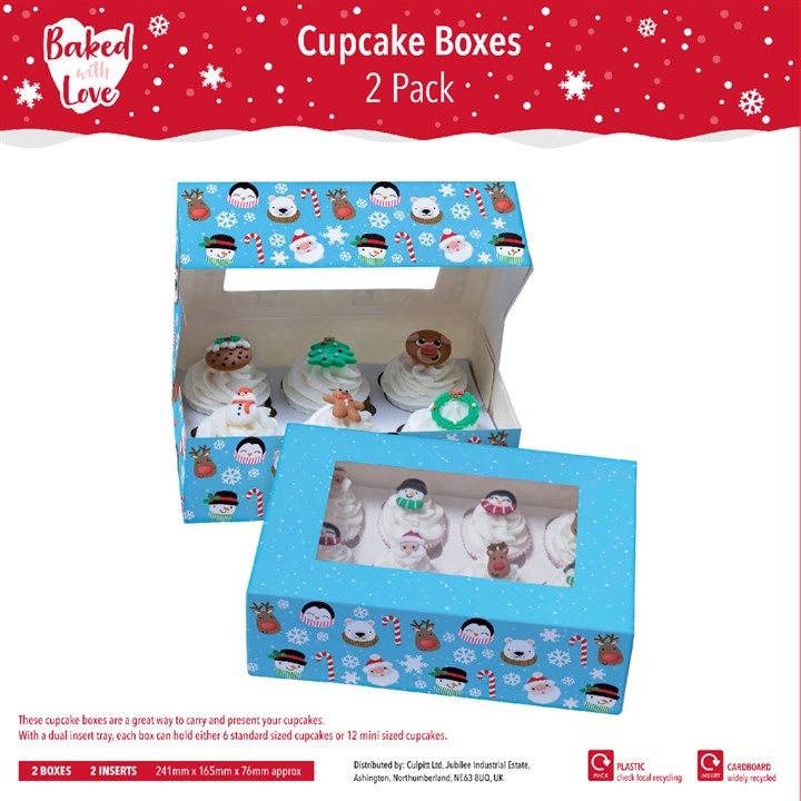 Baked with Love 2 pack Christmas Friends Cupcake Boxes are a great way to carry and present your Christmas treats.