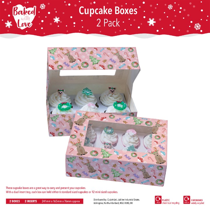 Baked with Love 2 pack Magical Woodland Cupcake Boxes are a great way to carry and present your Christmas treats.