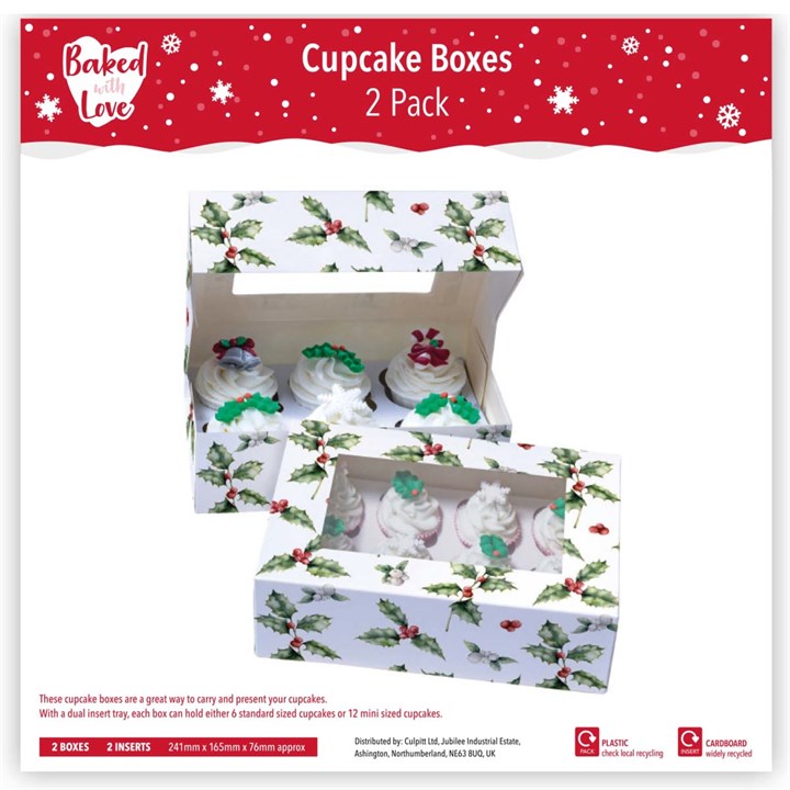 Baked with Love 2 pack Vintage Holly Cupcake Boxes are a great way to carry and present your Christmas treats.