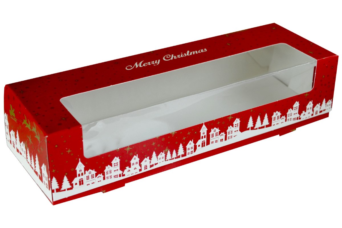 Present your mince pies with a wow! These Christmas boxes show off a beautiful festive print with a clear acetate window, perfect for transporting to customer, friends and family! Flat packed, they can be assembled with ease!