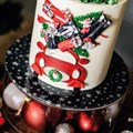 Masonite cake boards feature a printed starry night design to give cakes a stylish finish.