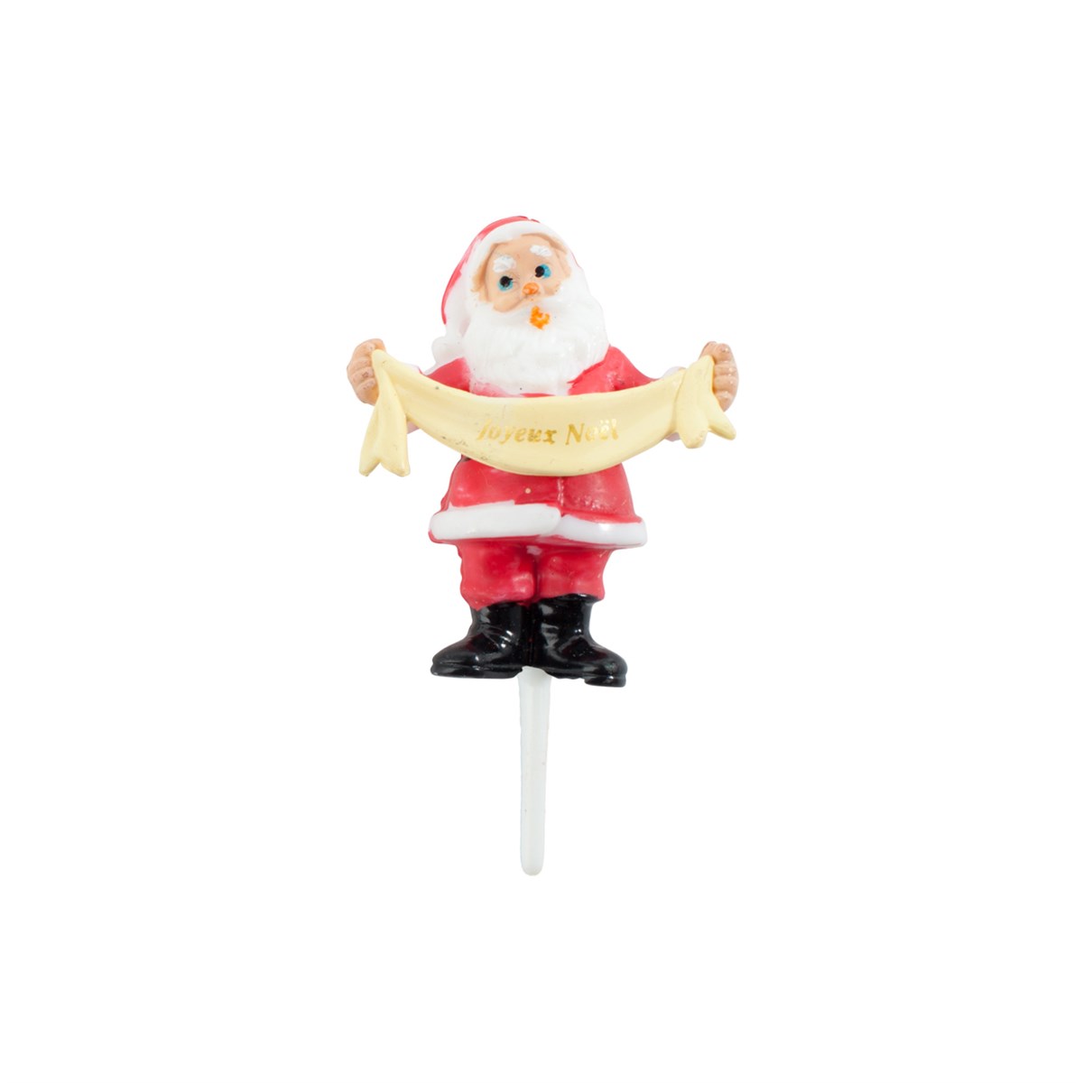 This Joyeux Noel plastic santa will add a festive touch to Christmas cakes and bakes. Simply insert into any cake creation.