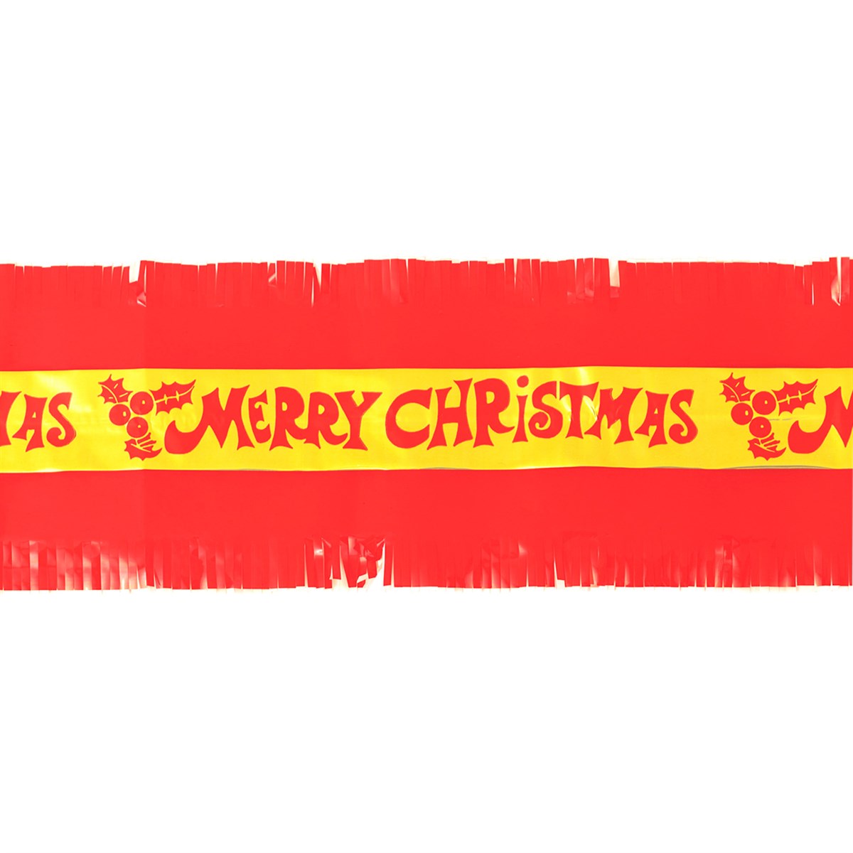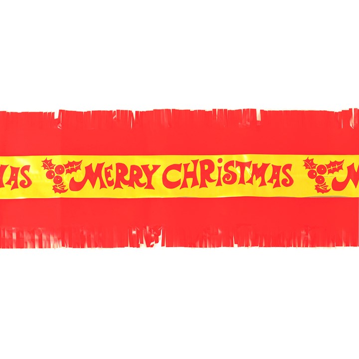 Our Merry Christmas Cake Frill is made from a paper backed, opaque red film, with a central band of gold coloured foil which has been printed with a repeating ''Merry Christmas'' greeting. Both sides of the frill are fringed.