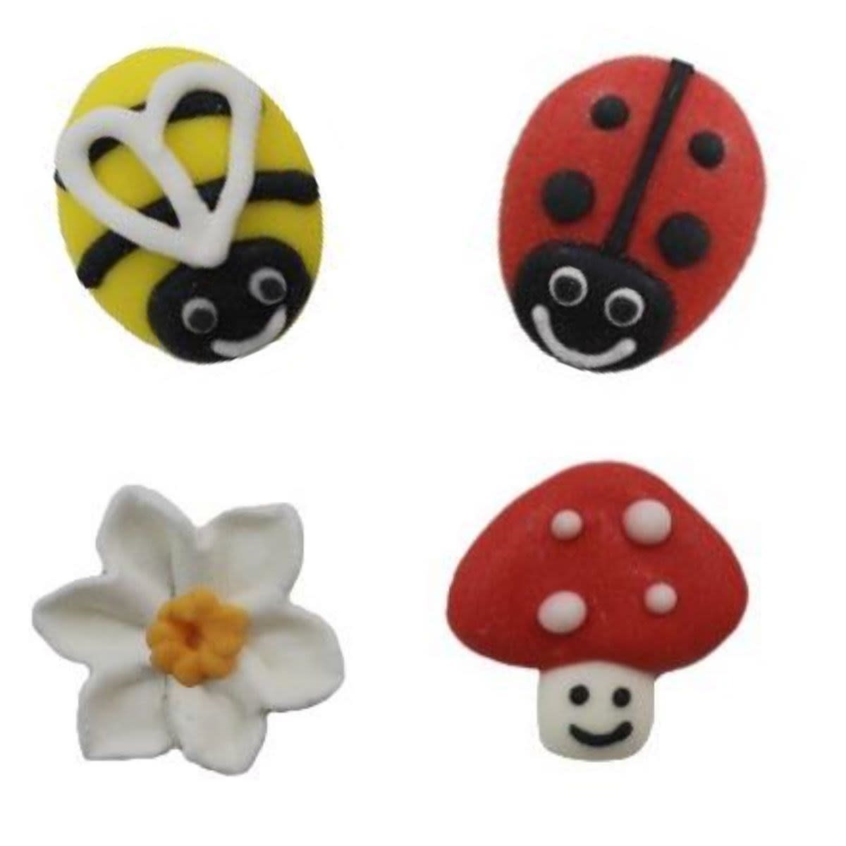 Sugar; cornstarch; EGG albumen; colours: E129, E133, E102