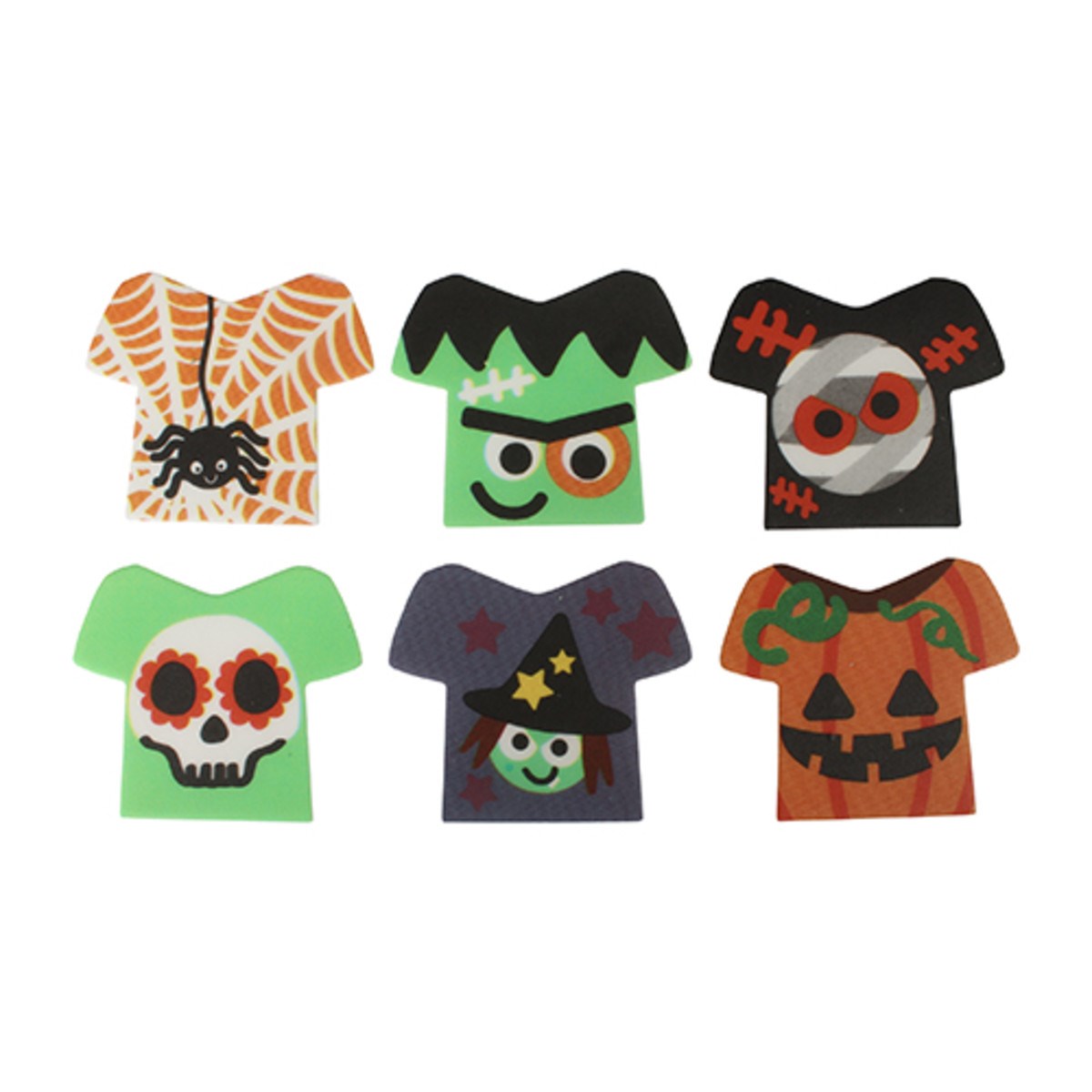 Features 8 spooky designs including a pumpkin, witch, spider, vampire, mummy, ghost, black cat and Frankenstein.