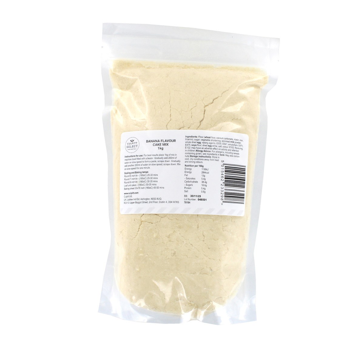 Flour (WHEAT flour, calcium carbonate, niacin, iron, thiamin); sugar; vegetable shortening; skimmed MILK powder; whole dried EGG; raising agents: E500, E541; emulsifiers: E471, E475; SOYA flour; dried EGG white; salt; colour: E102; flavouring.
