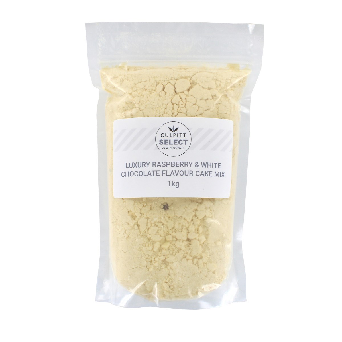 Culpitt Select Raspberry & White Chocolate Flavour Cake Mix is made in the UK from high quality ingredients and includes delicious chocolate chip and raspberry fruit pieces. This mix is the perfect blend of ingredients to help save time spent on baking. Simply add water to create excellent results every time. As a guide, 1kg of cake mix will make 2 x 8" cakes, approx 3" depth.