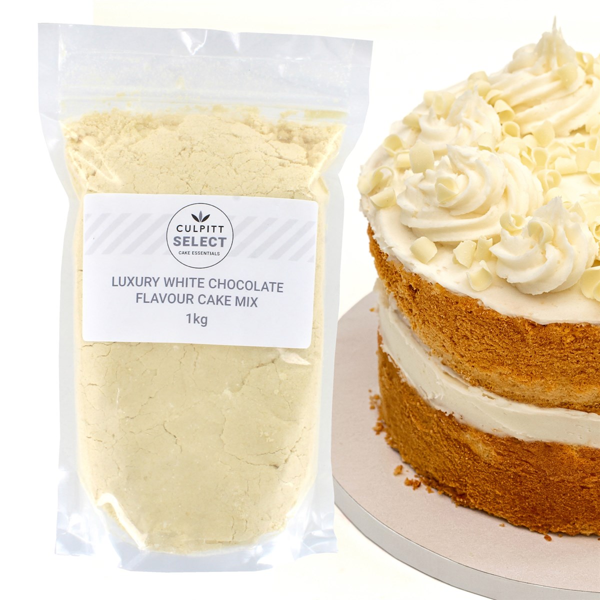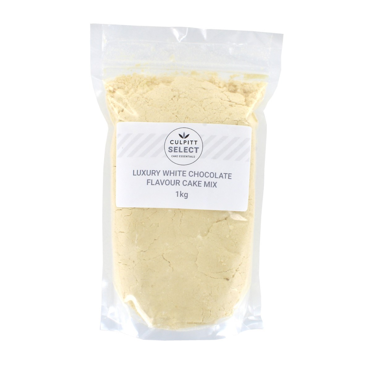 Culpitt Select Luxury White Chocolate Flavour Cake Mix is made in the UK from high quality ingredients and delicious white chocolate pieces. This mix is the perfect blend of ingredients to help save time spent on baking. Simply add water to create excellent results every time. As a guide, 1kg of cake mix will make 2 x 8" cakes, approx 3" depth.