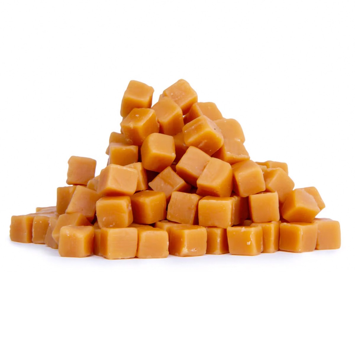 Sugar; glucose syrup; vegetable fats (palm, palm kernel); skimmed MILK powder; humectant: glycerin; butter (MILK); salt; emulsifiers: monoglycerides of fatty acids; flavouring