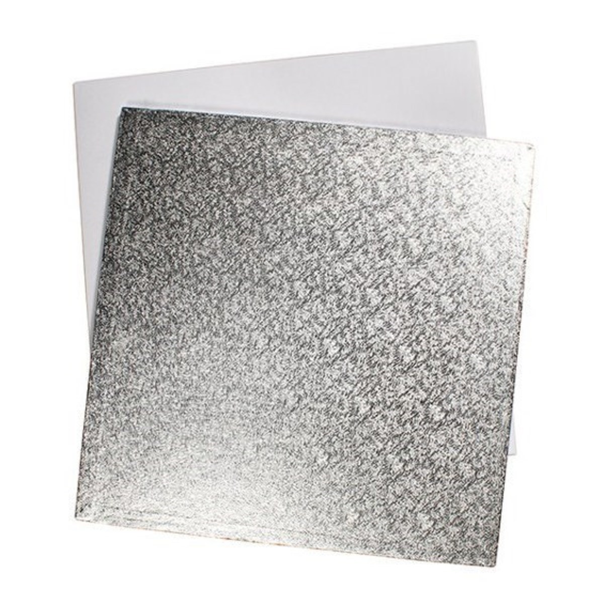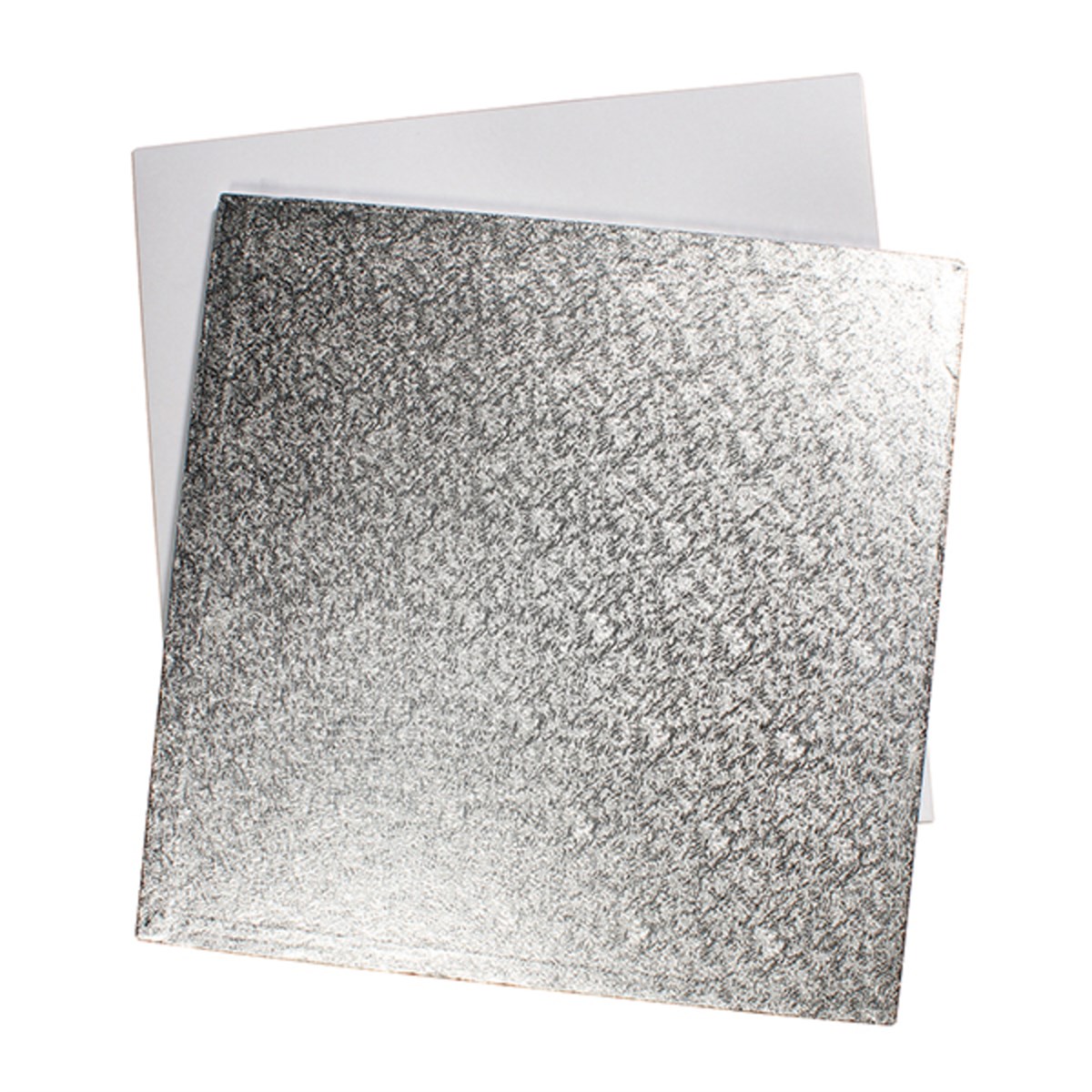 This silver 14'' box and square board set is the perfect way to efficiently and safely transport your special homemade cakes.