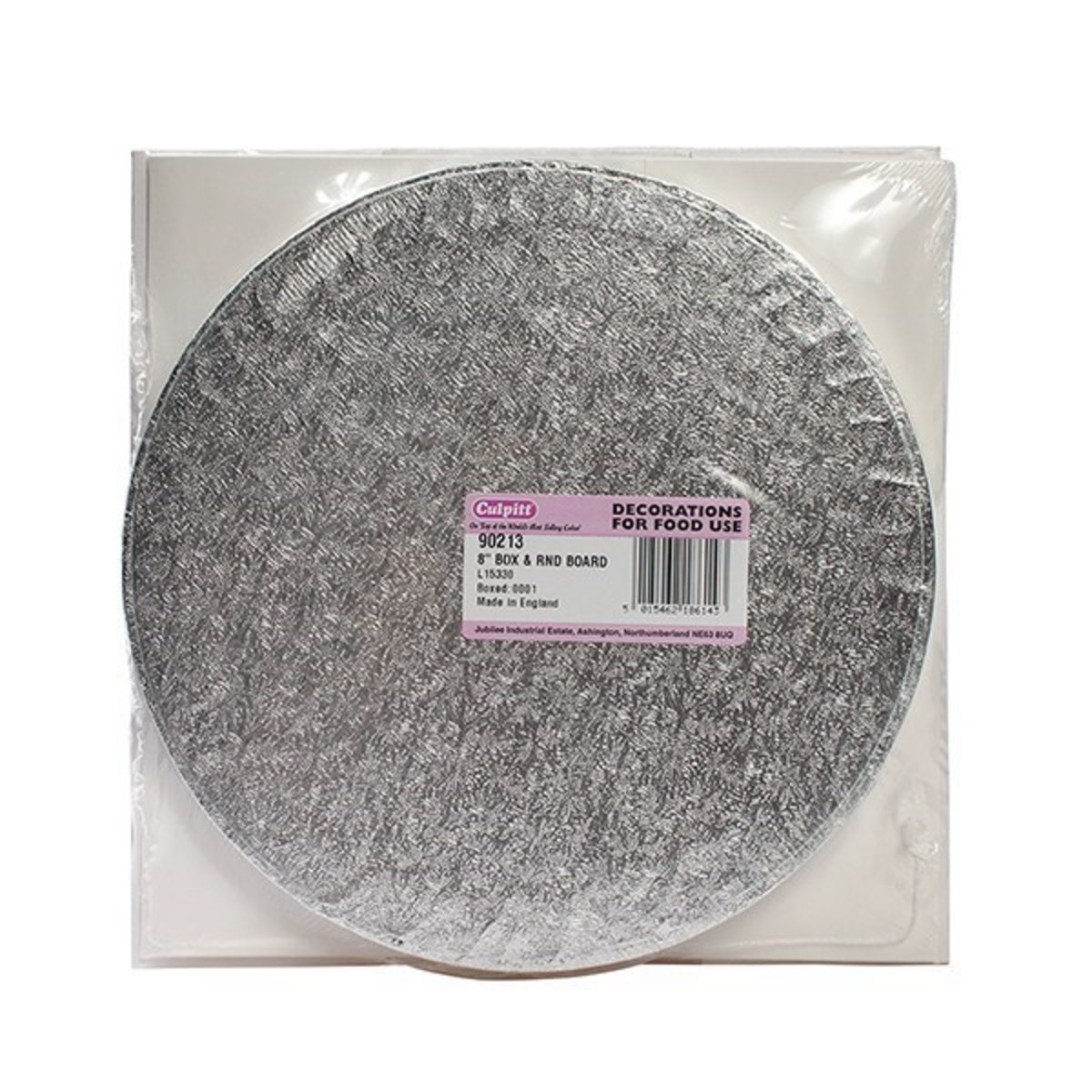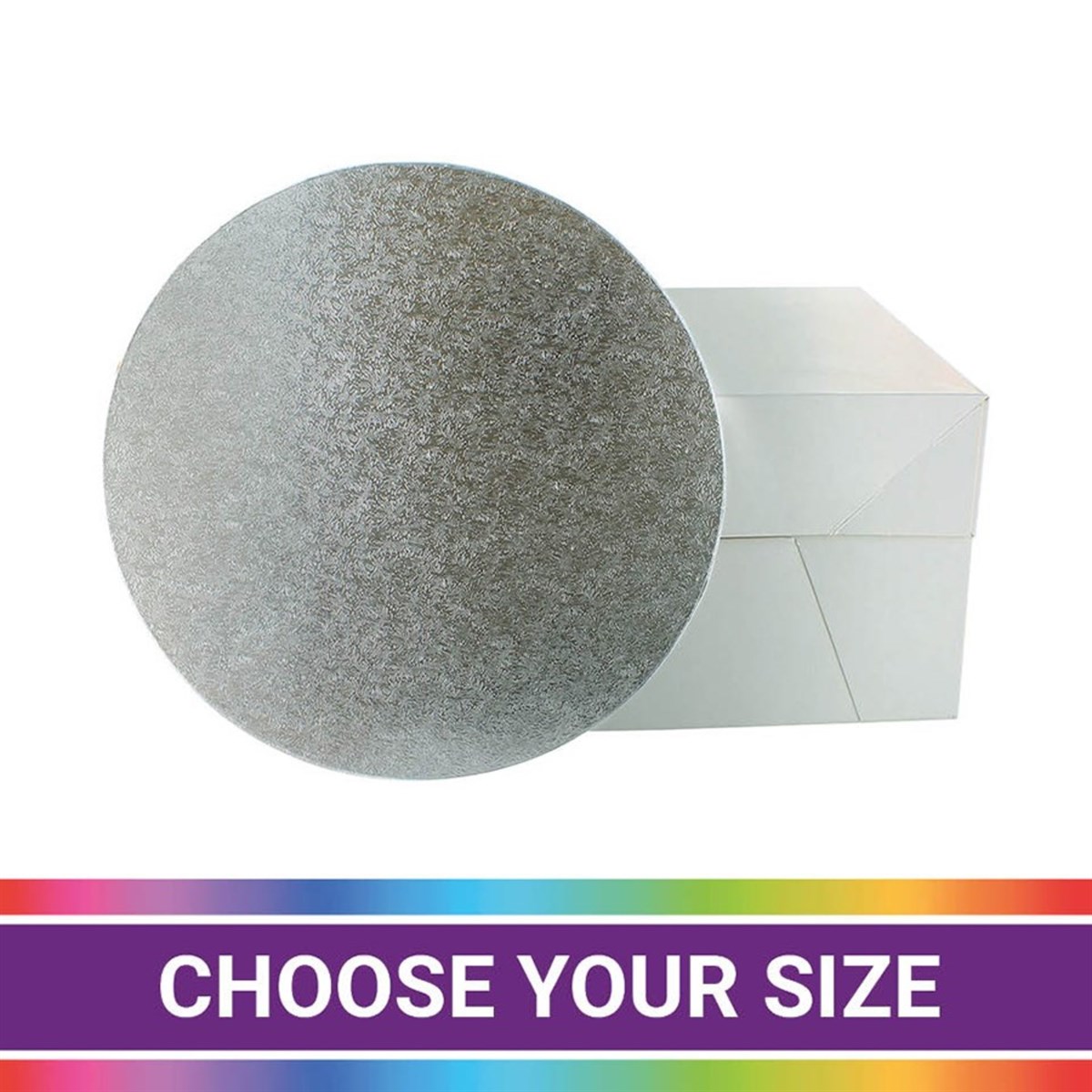 This silver 8'' box and round board set is the perfect way to efficiently and safely transport your special homemade cakes.