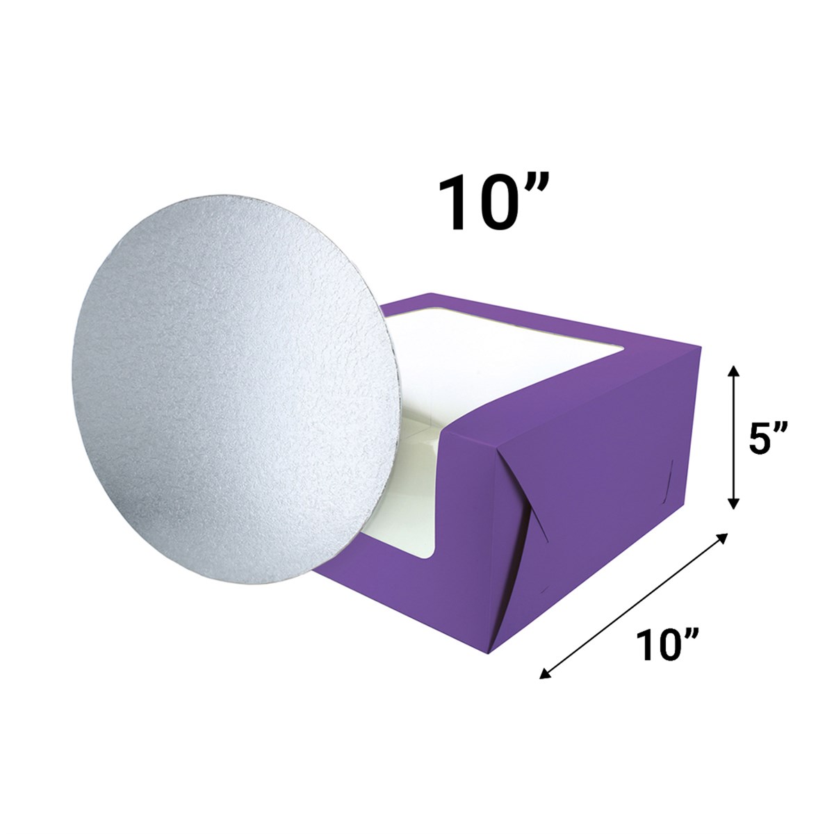 Purple 10" Windowed Cake Box and Double Thick Cake Card From Baked With Love
