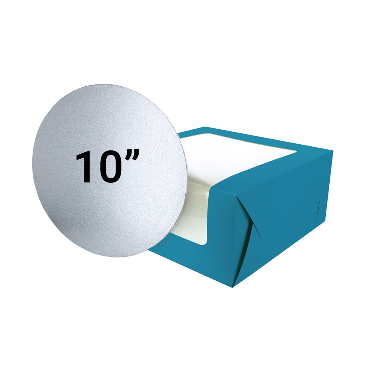 Teal 10" Windowed Cake Box and Double Thick Cake Card From Baked With Love