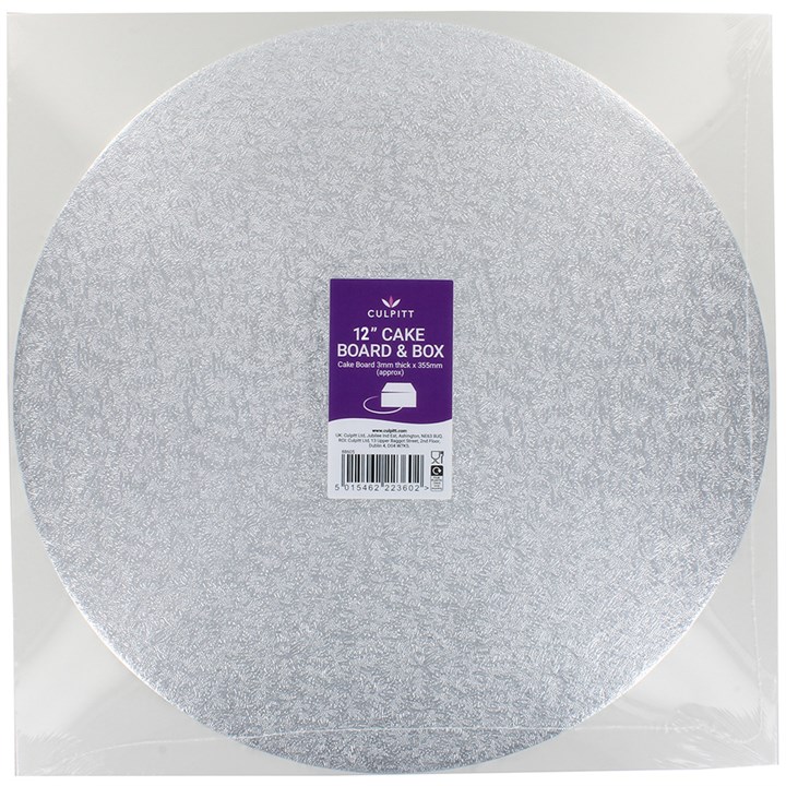 Dimensions: Box 254mm x 152mm (tall) (12" x 6" tall). Cake Card 254mm (12" x 3mm thick approx)