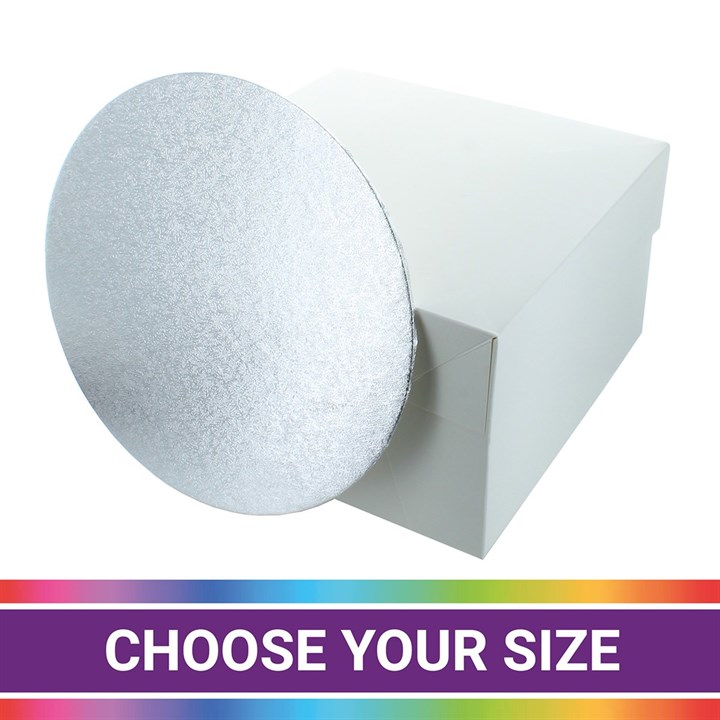 White cake boxes and 3mm silver turned edge cake cards are the perfect way for transporting cakes.