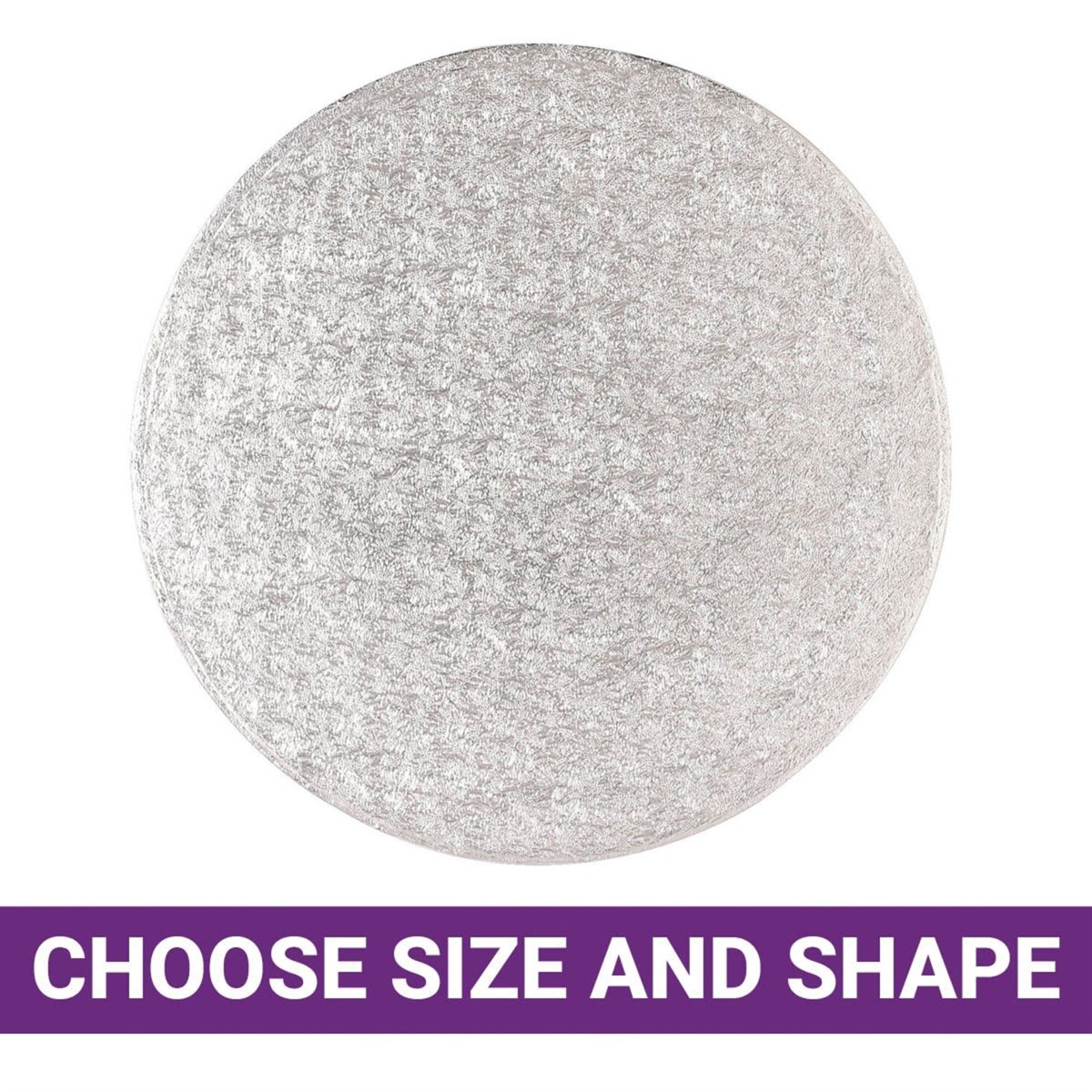 At just 5mm thick, these boards use 50% less materials than our standard drum yet easily support multi-tiered sponge cakes and are suitably strong for heavier cakes too. With its neat turned edge, each slimline board is fully covered with silver foil and is finished for displaying cakes.