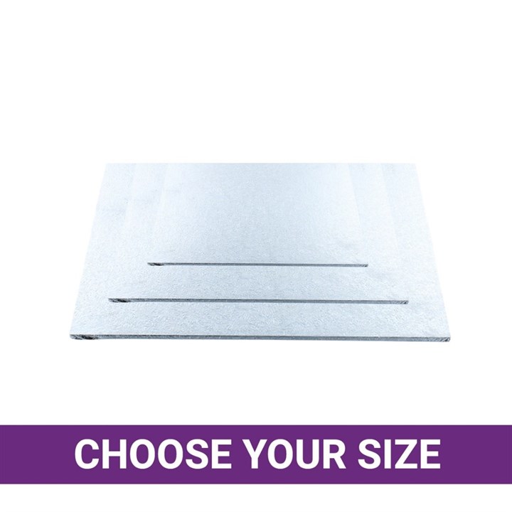 These 3mm thick, Rectangular Cake Boards have a strong, hardboard centre, making them ideal for use with heavier fruit cakes. The top and sides of the Cake Board are covered with a silver coloured, embossed foil and there is a white backing paper on the reverse.