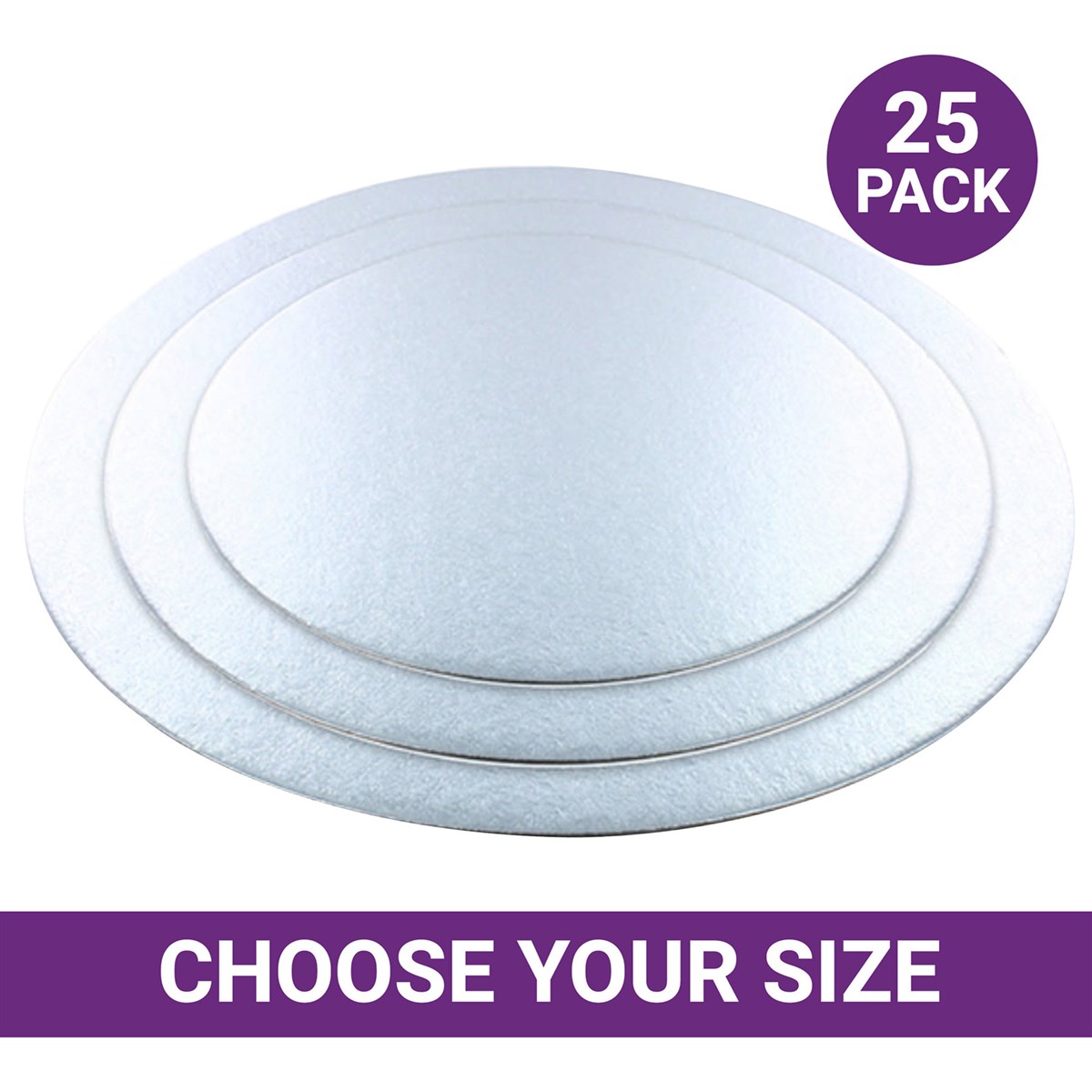 Available in a variety of sizes in multipacks of 25. These cake boards are not individually wrapped.