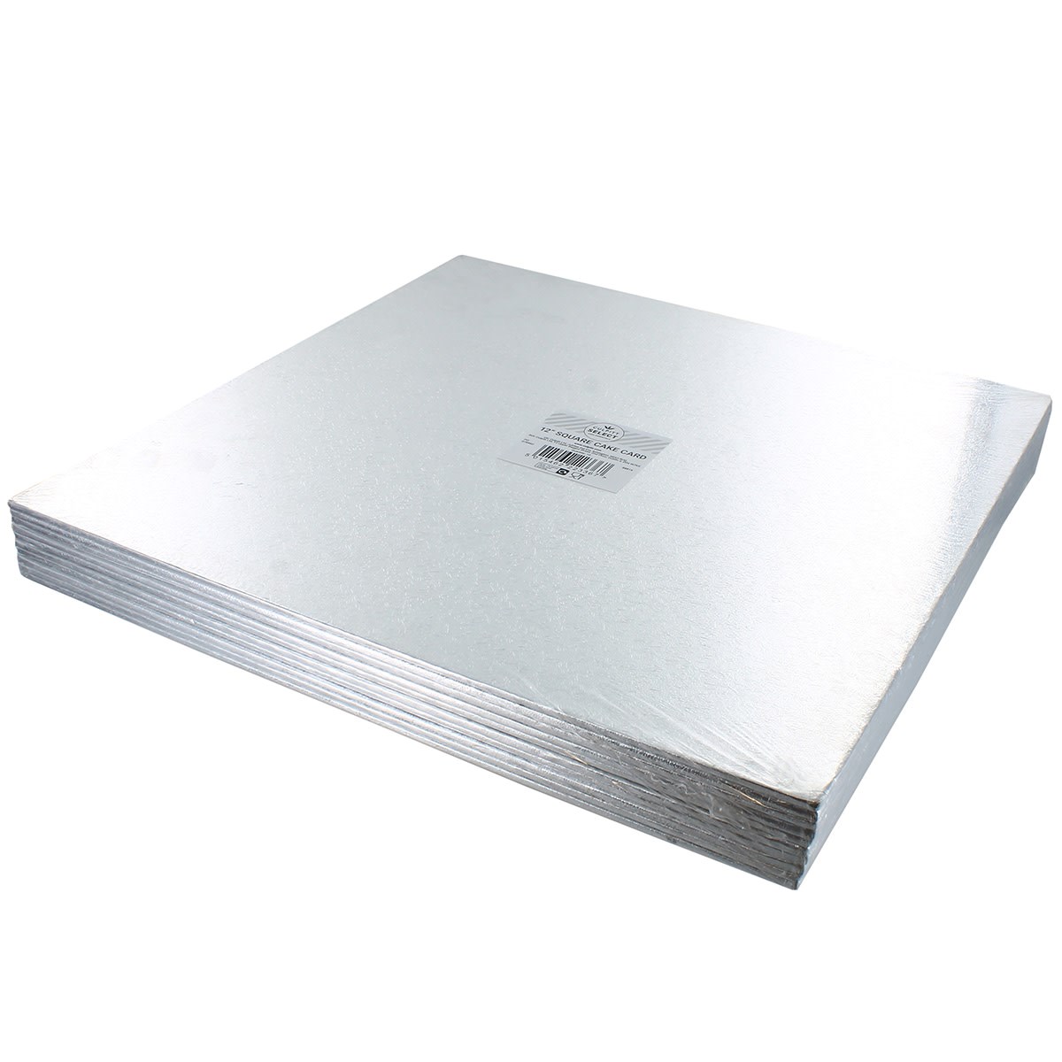 These 12" square 3mm cake cards (also known as double thick cake boards) have a neat silver foil turned edge meaning they are ideal for presenting fruit or sponge cakes, or using between tiered celebration cakes.