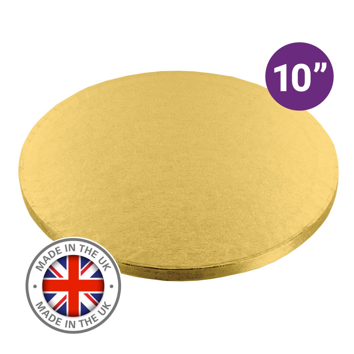 Premium 10" round single gold cake board for professional cake makers, bakeries and catering businesses. A Culpitt cake board offers superior strength, reliability and presentation for the most exceptional cakes.