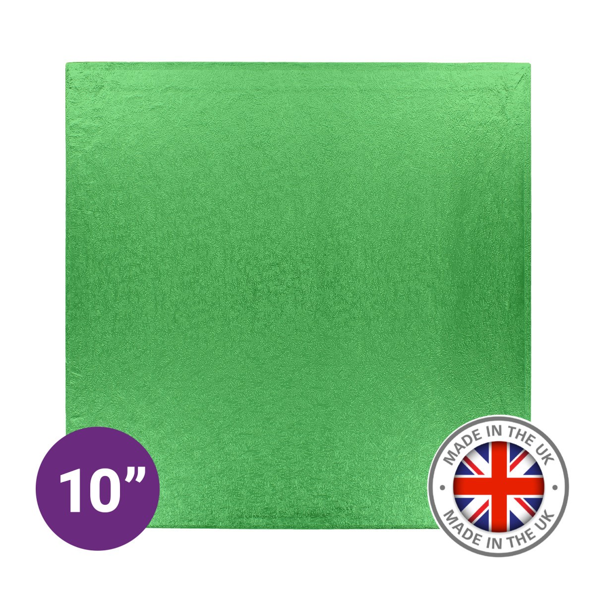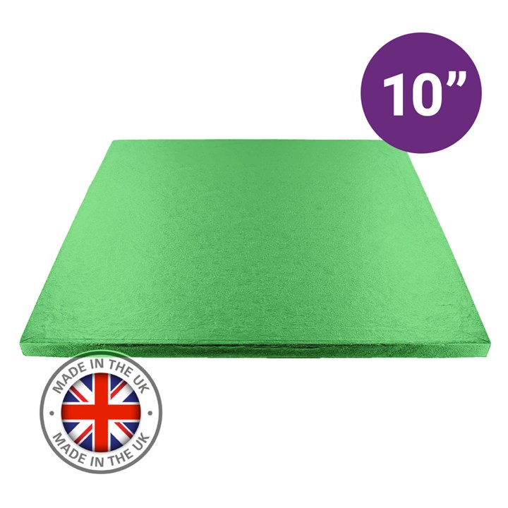 Premium 10" square single green cake board for professional cake makers, bakeries and catering businesses. A Culpitt cake board offers superior strength, reliability and presentation for the most exceptional cakes.
