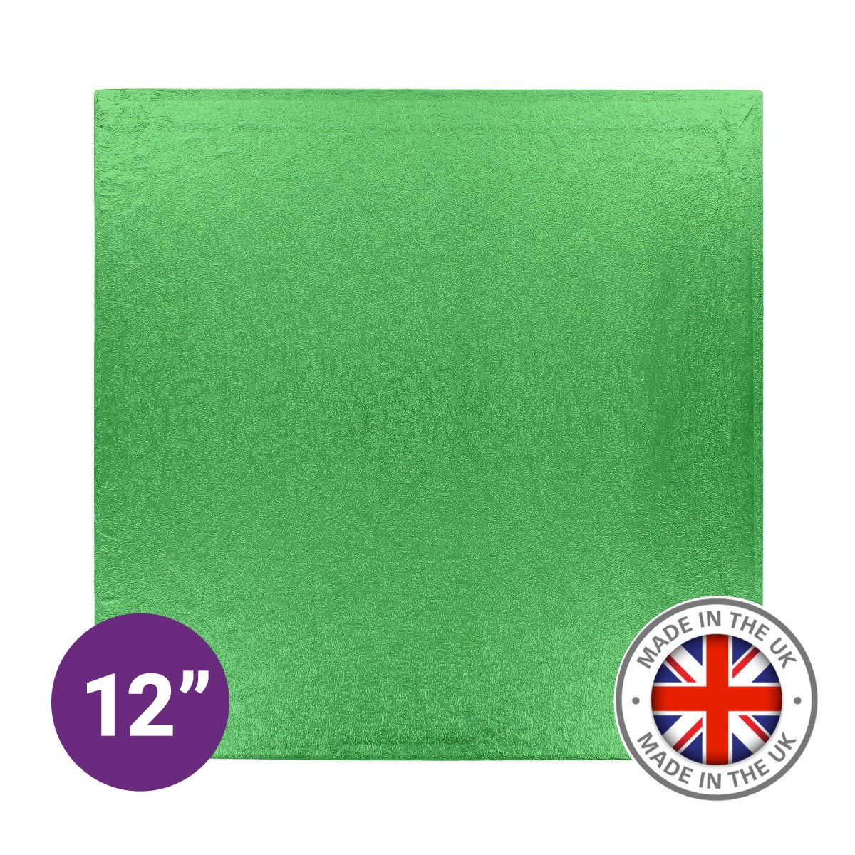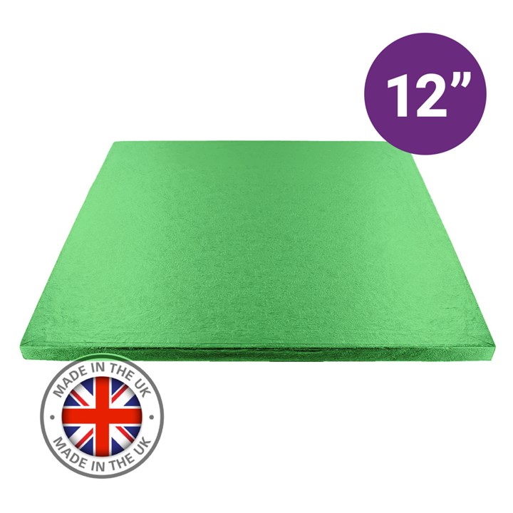 Premium 12" square single green cake board for professional cake makers, bakeries and catering businesses. A Culpitt cake board offers superior strength, reliability and presentation for the most exceptional cakes.