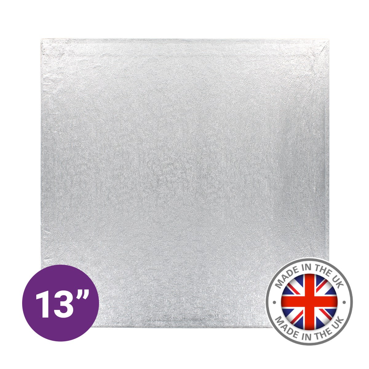 Premium 13" single square silver cake board. This individual board is suitable for professional cake makers, bakeries and catering businesses. A Culpitt cake board offers superior strength, reliability and presentation for the most exceptional cakes.