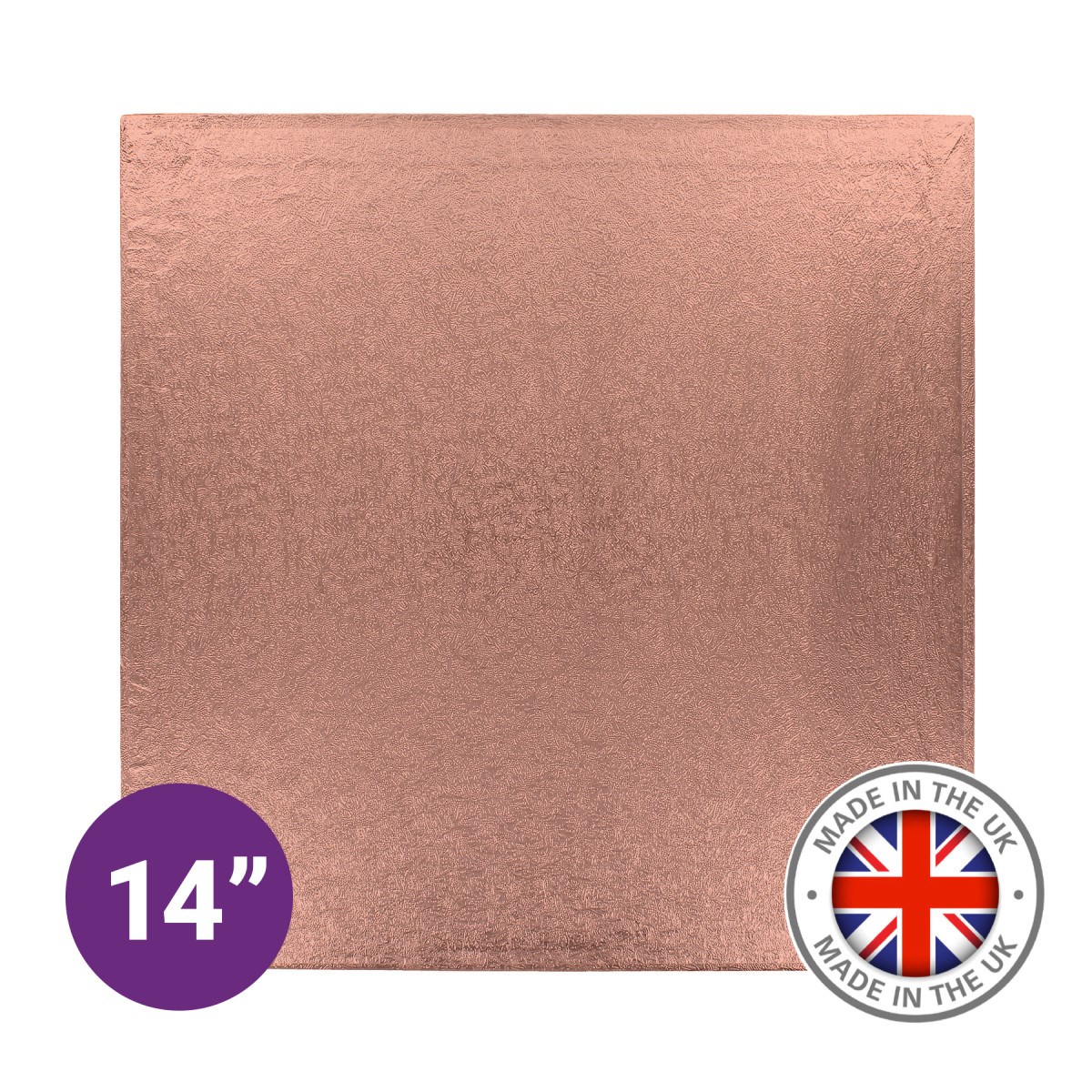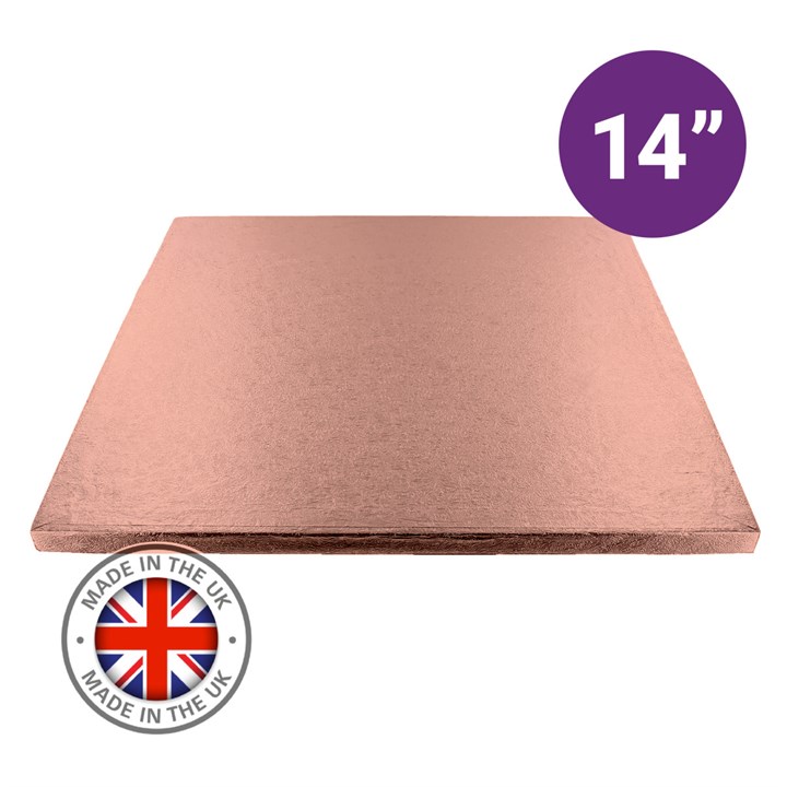 Premium 14" square single rose gold cake board for professional cake makers, bakeries and catering businesses. A Culpitt cake board offers superior strength, reliability and presentation for the most exceptional cakes.