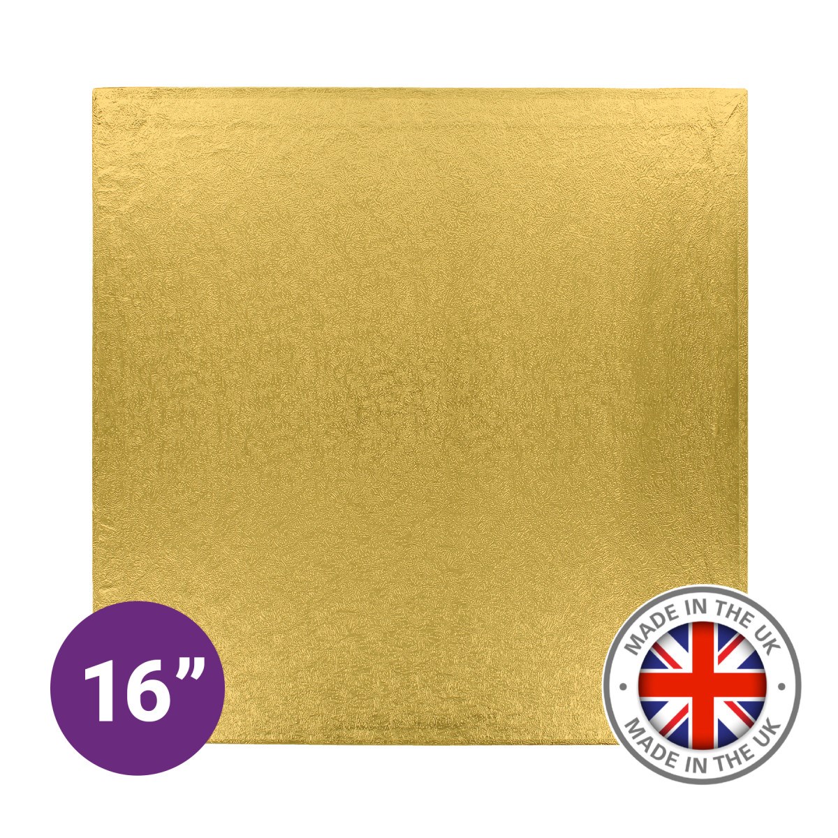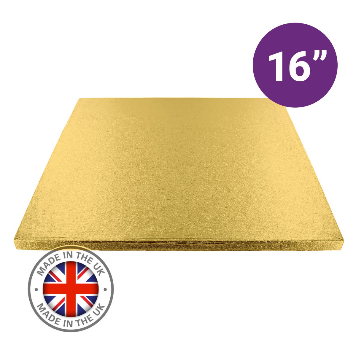 Premium 16" square single gold cake board for professional cake makers, bakeries and catering businesses. A Culpitt cake board offers superior strength, reliability and presentation for the most exceptional cakes.