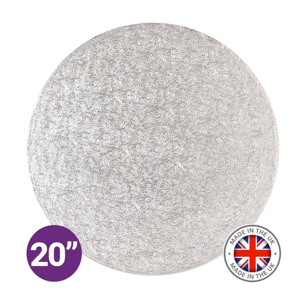 Premium 20" round single silver cake board. This individual board is suitable for professional cake makers, bakeries and catering businesses. A Culpitt cake board offers superior strength, reliability and presentation for the most exceptional cakes.