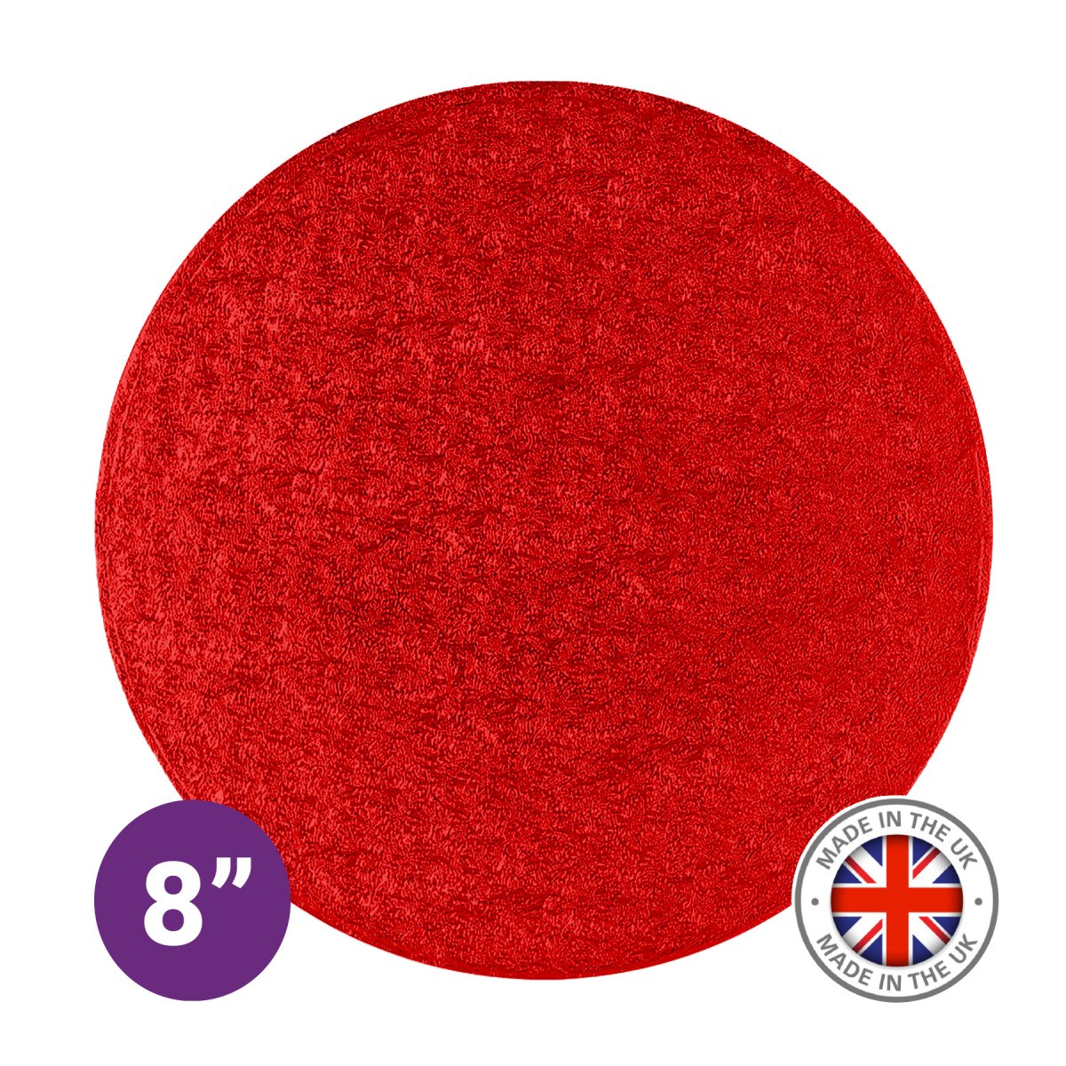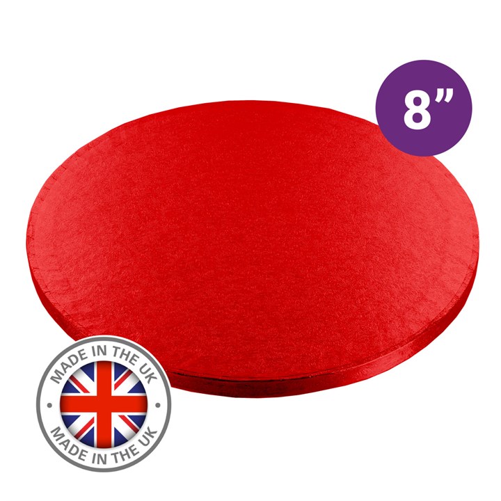 Premium 8" round single red cake board for professional cake makers, bakeries and catering businesses. A Culpitt cake board offers superior strength, reliability and presentation for the most exceptional cakes.