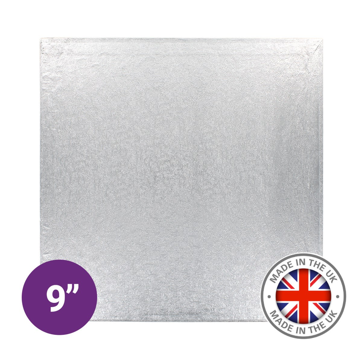 Premium 9" single square silver cake board. This individual board is suitable for professional cake makers, bakeries and catering businesses. A Culpitt cake board offers superior strength, reliability and presentation for the most exceptional cakes.