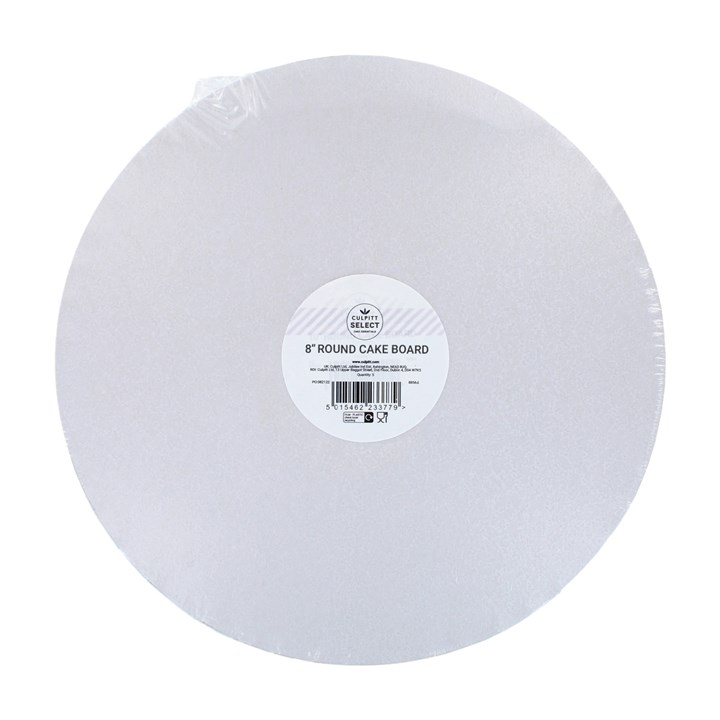 Culpitt Select 8" round cake drums are lightweight, but still reliably strong, they are a great alternative to our standard Culpitt drum. These contemporary white cake boards help display cakes beautifully making them a great value choice both practically and aesthetically.
