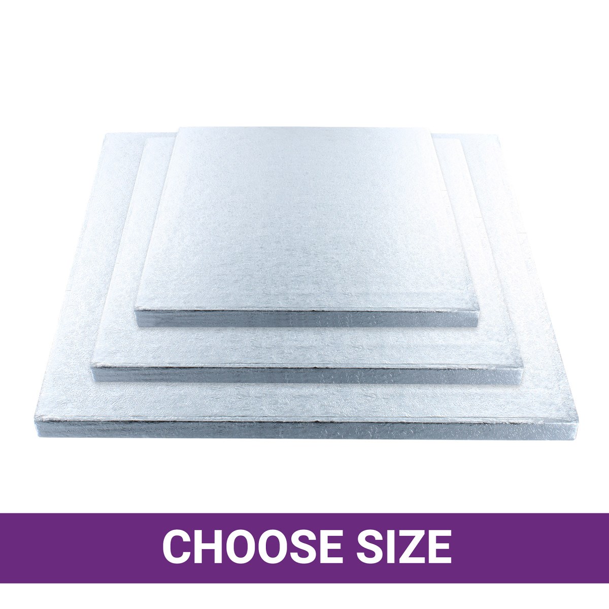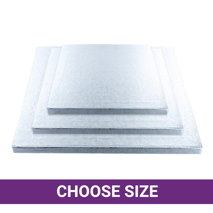 Culpitt premium square silver cake boards are available as single high strength boards for one off professional cake presentation. If you make a lot of cakes our wholesale bulk packs of 5 cake boards could be better value.